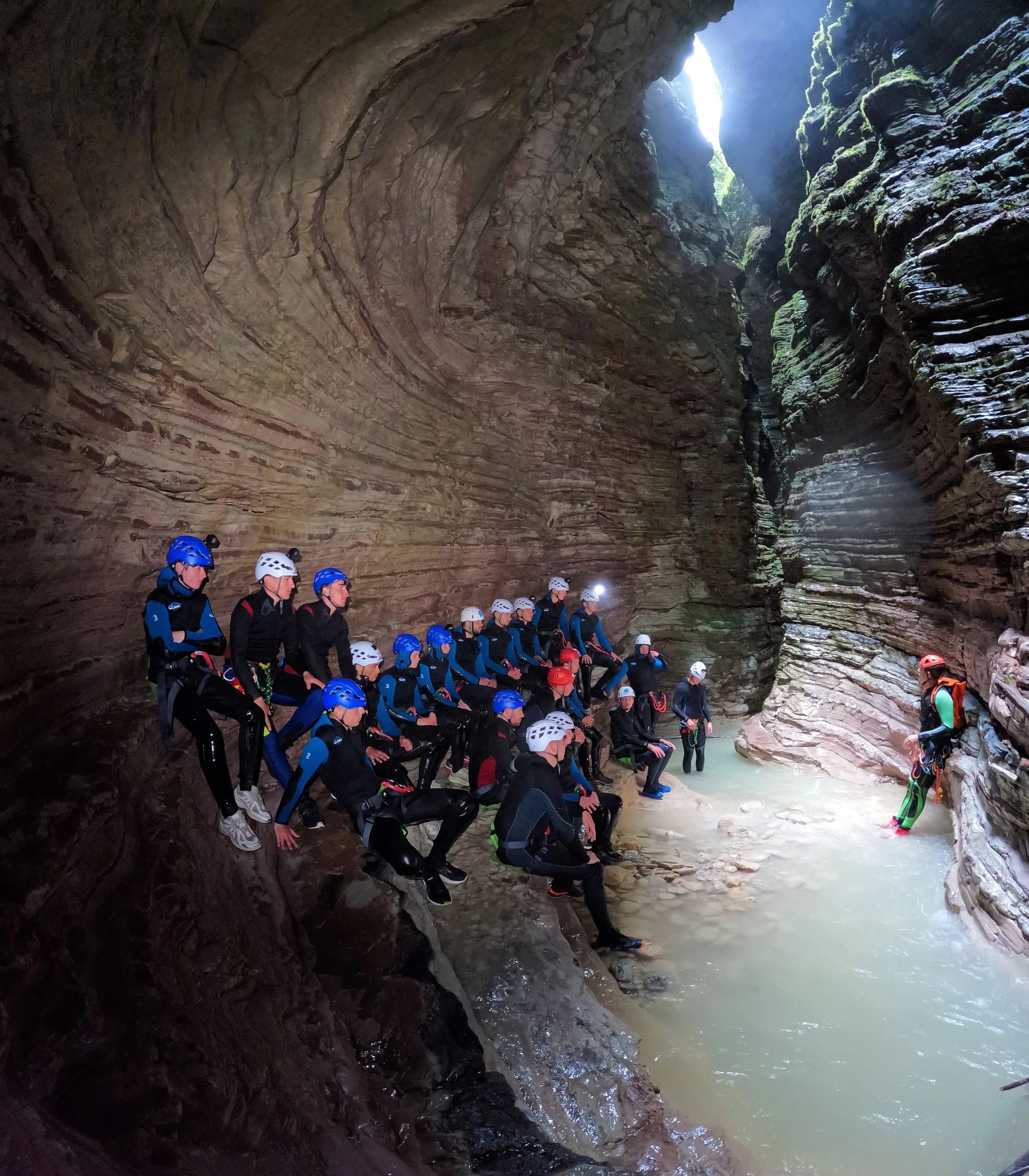 Incontrerai la guida esperta e, dopo aver indossato l’attrezzatura fornita, tra cui muta in neoprene, casco, imbrago e luce frontale, raggiungerai il punto di partenza con un breve trasferimento in navetta seguito da una camminata di 10/15 minuti. Prima di entrare nel canyon, riceverai tutte le indicazioni necessarie per affrontare il percorso in sicurezza, grazie a un briefing teorico e pratico.