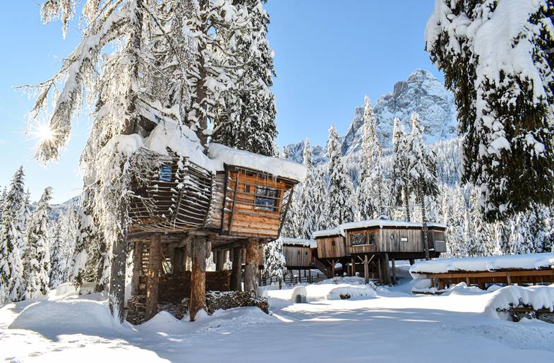 Dormire in una Casa sull'albero di lusso nel cuore delle Dolomiti