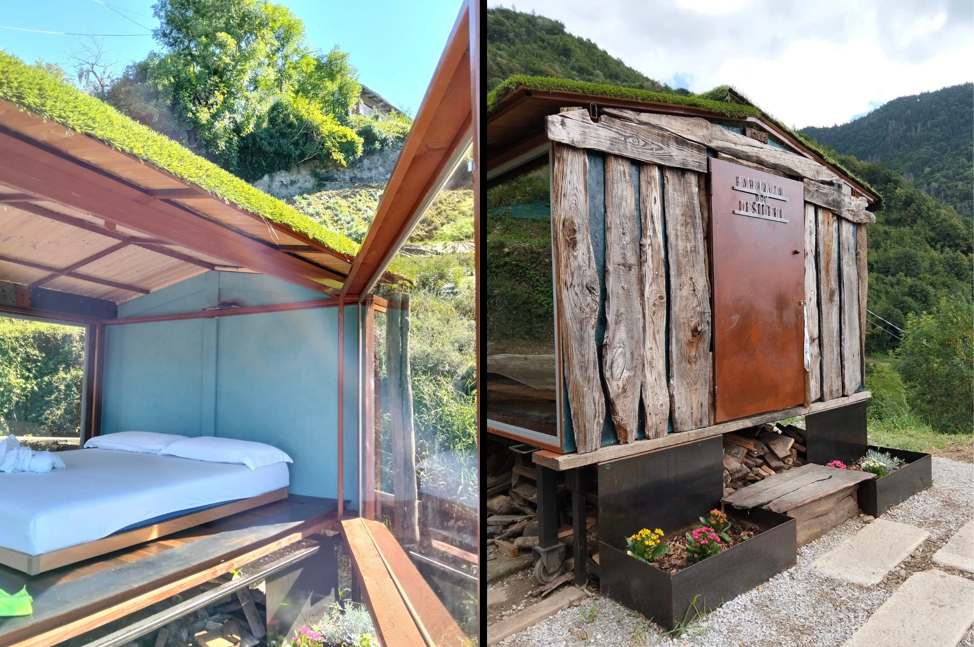 Immaginate una piccola casetta di legno, con delle ampie pareti in vetro e il tetto apribile, che vi permettono di ammirare il cielo stellato direttamente dal letto, in un’atmosfera intima e suggestiva. All’interno troverete un comodo letto, completo di tutta la biancheria necessaria, pensato per regalarvi un riposo profondo.