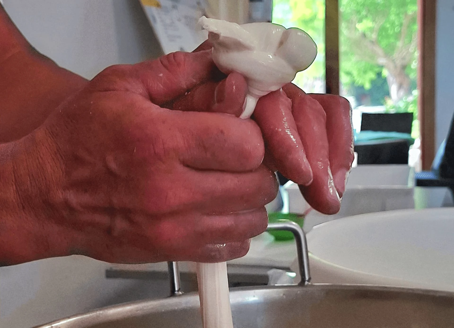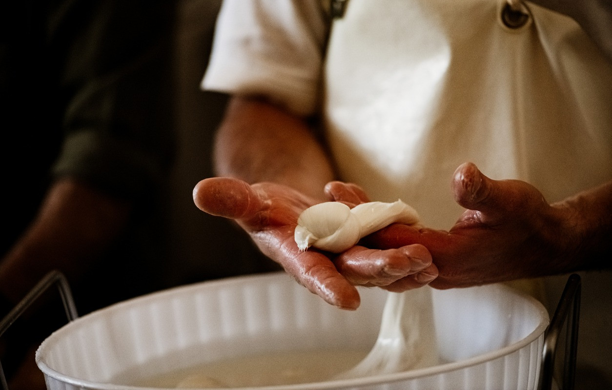 Successivamente entrerai nel laboratorio del casaro, dove assisterai al processo di trasformazione del latte fresco in mozzarella, osservando da vicino ogni fase della lavorazione. Indossando il grembiule, diventerai protagonista del workshop pratico: lavorerai la cagliata, modellerai la pasta filata e realizzerai il tuo formaggio, che potrai portare con te come ricordo.
