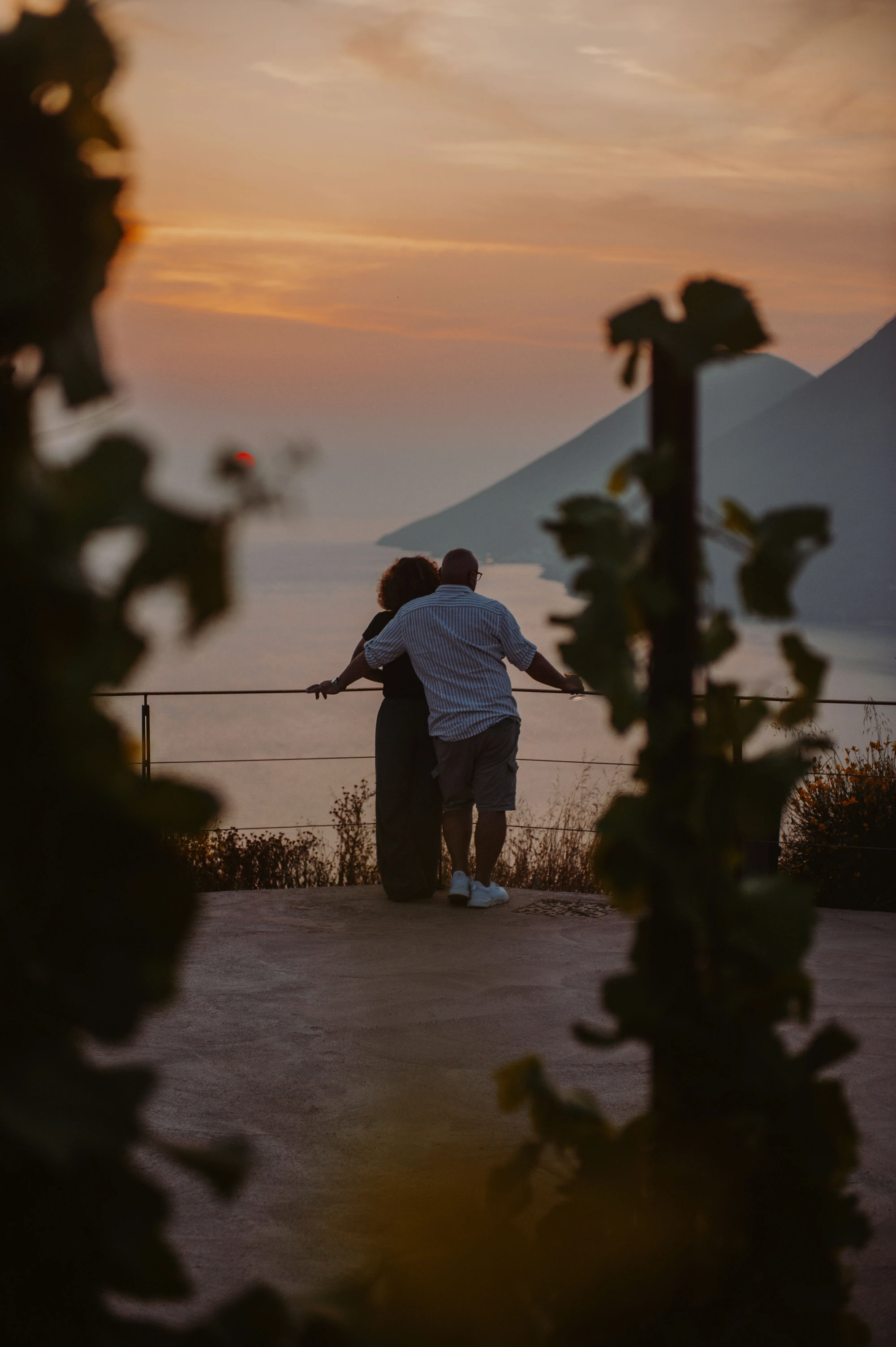 Dopo una breve passeggiata tra i filari, ti ritroverai in un angolo di paradiso, un punto panoramico immerso nella vigna da cui potrai ammirare Alicudi, Filicudi e Salina, lasciandoti incantare dall’orizzonte infinito del mare.