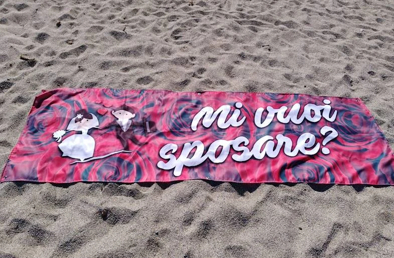 - Esposizione a terra in fase di atterraggio dello striscione "mi vuoi sposare"