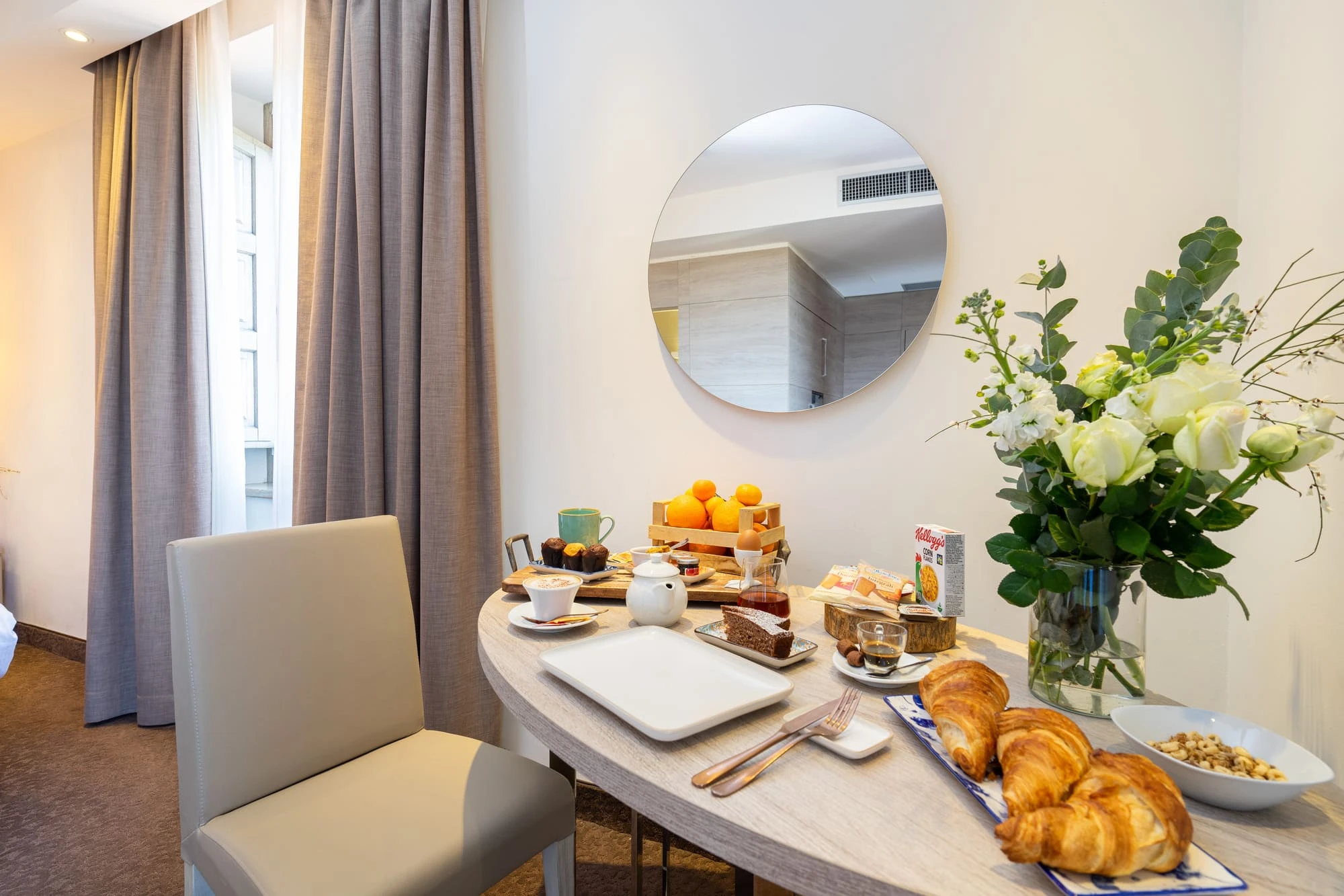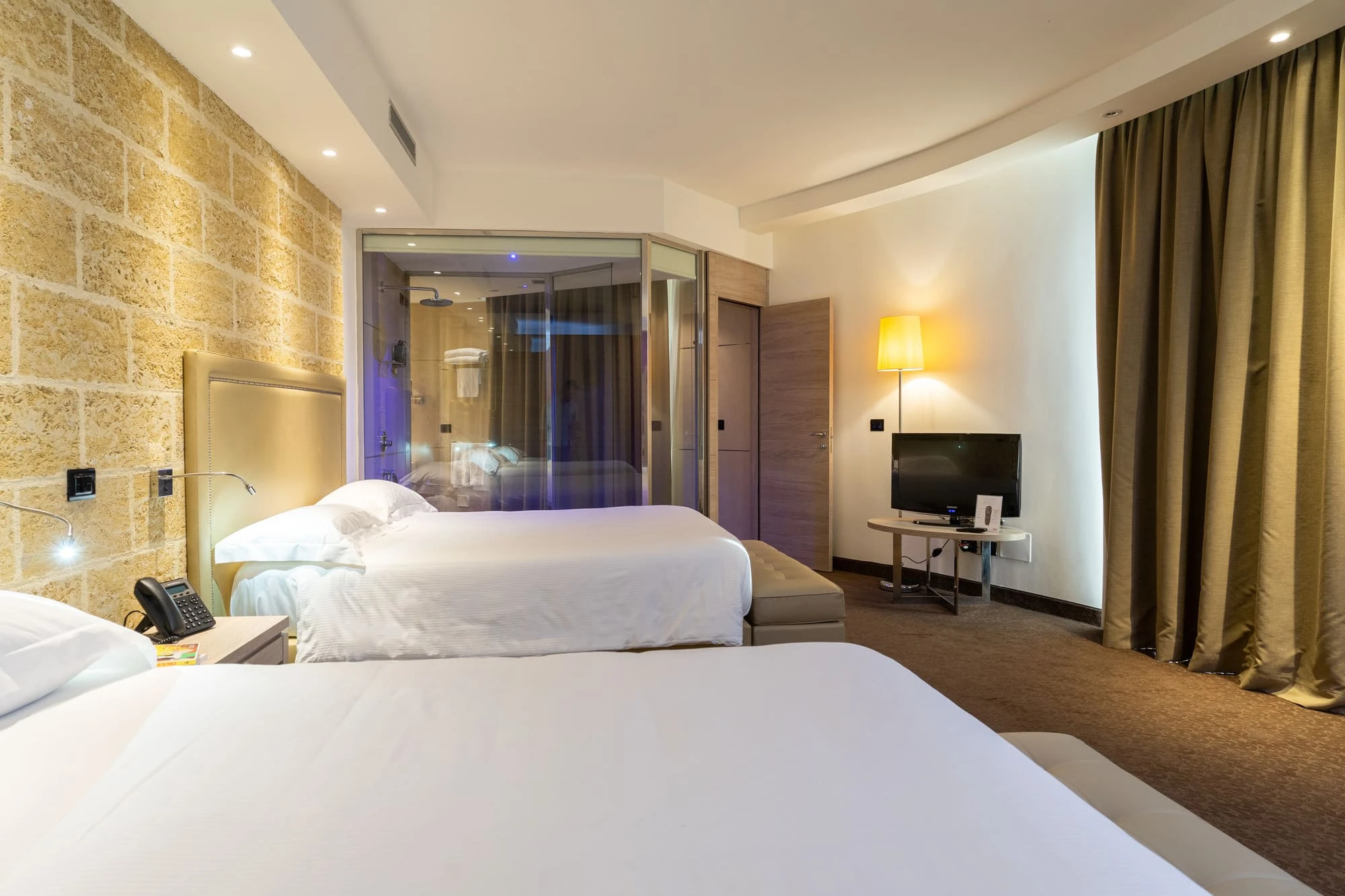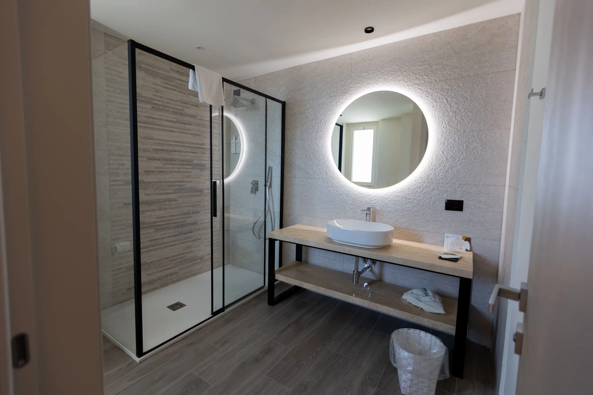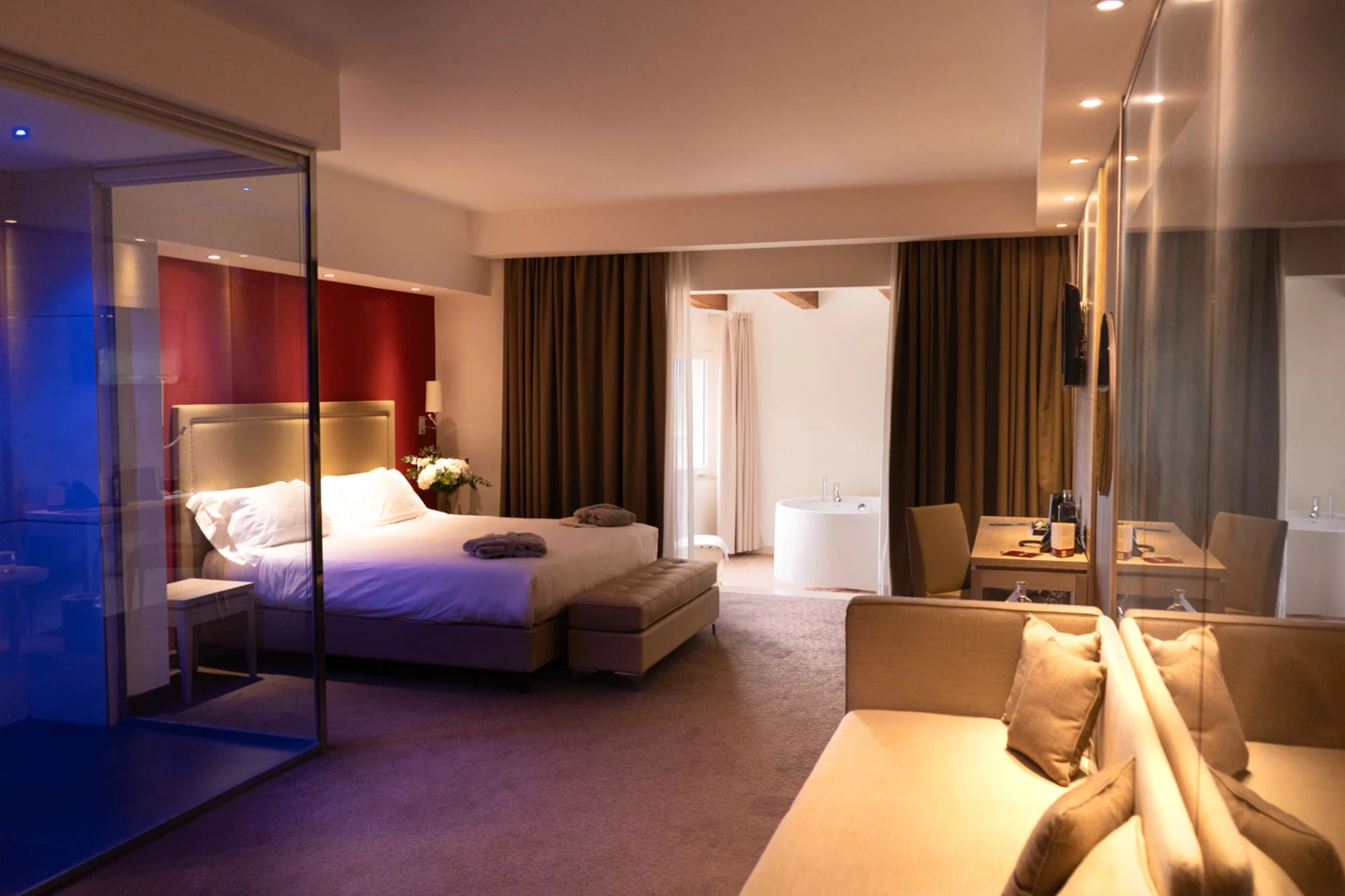 La struttura dispone di tre tipologie di camere: Junior Suite, Suite e SPA Suite, tutte progettate per offrire il massimo comfort. Ogni camera è dotata di letto matrimoniale, bagno privato, aria condizionata e riscaldamento, TV, Wi-Fi, mini frigo bar e cassaforte. La SPA Suite, in particolare, regala un’esperienza esclusiva grazie alla presenza di una vasca idromassaggio in camera e di una sauna a infrarossi.