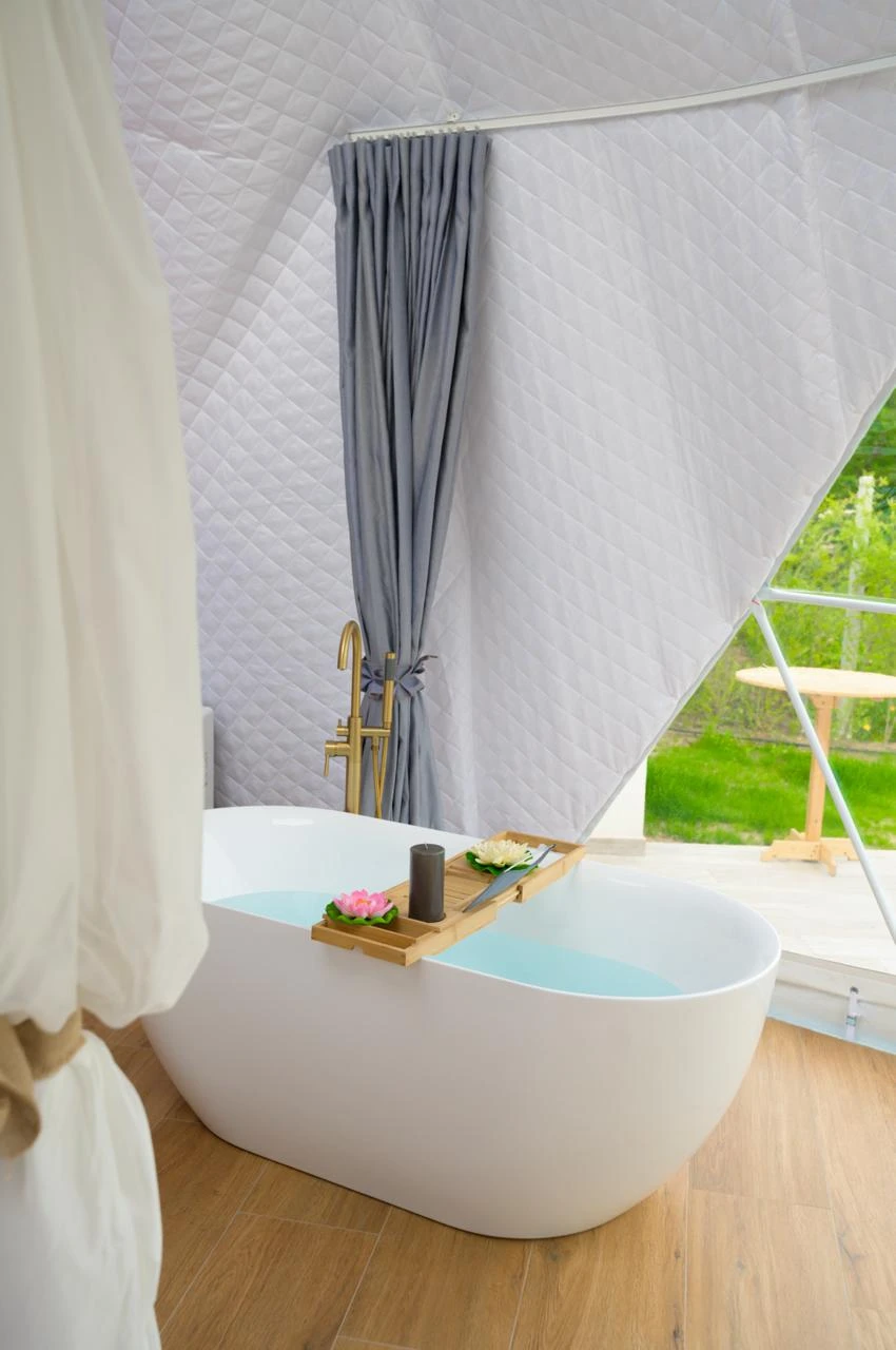Una bubble room, o cupola geodetica, è una struttura sferica e innovativa, pensata per chi desidera immergersi nella natura senza rinunciare al comfort e al romanticismo. Lasciati avvolgere da un’atmosfera magica e trascorri 1 o 2 notti sotto le stelle, con vasca idromassaggio all’aperto e tanti servizi su misura per farti vivere momenti indimenticabili con la persona che ami.