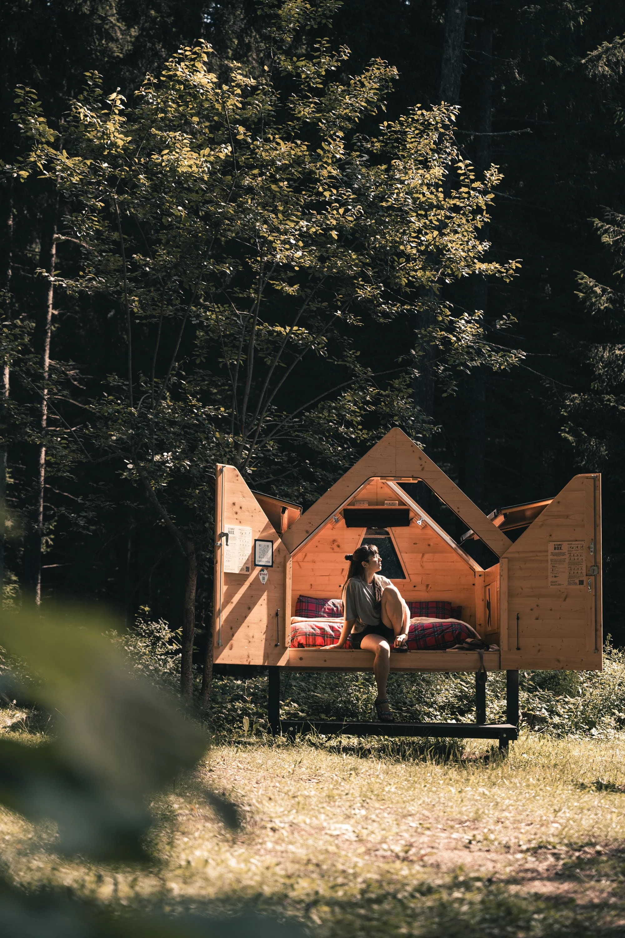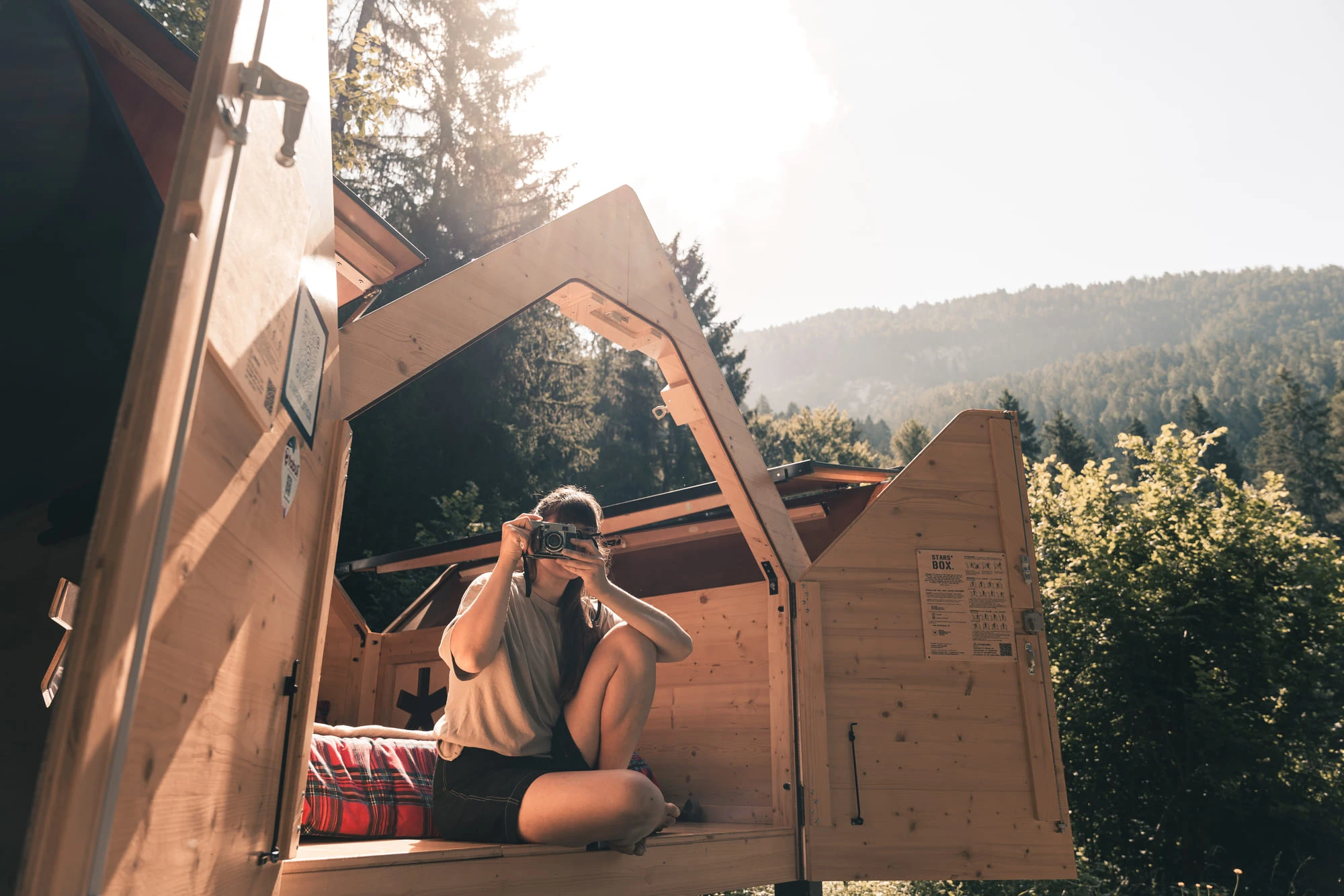 La Starsbox, un modo rivoluzionario di concepire il campeggio, un po’ tenda e un po’ capanna, è dotata di un tetto completamente apribile, che vi permetterà di addormentarvi osservando le stelle e di risvegliarvi con la luce naturale del mattino, in un contatto diretto e autentico con l’ambiente circostante.