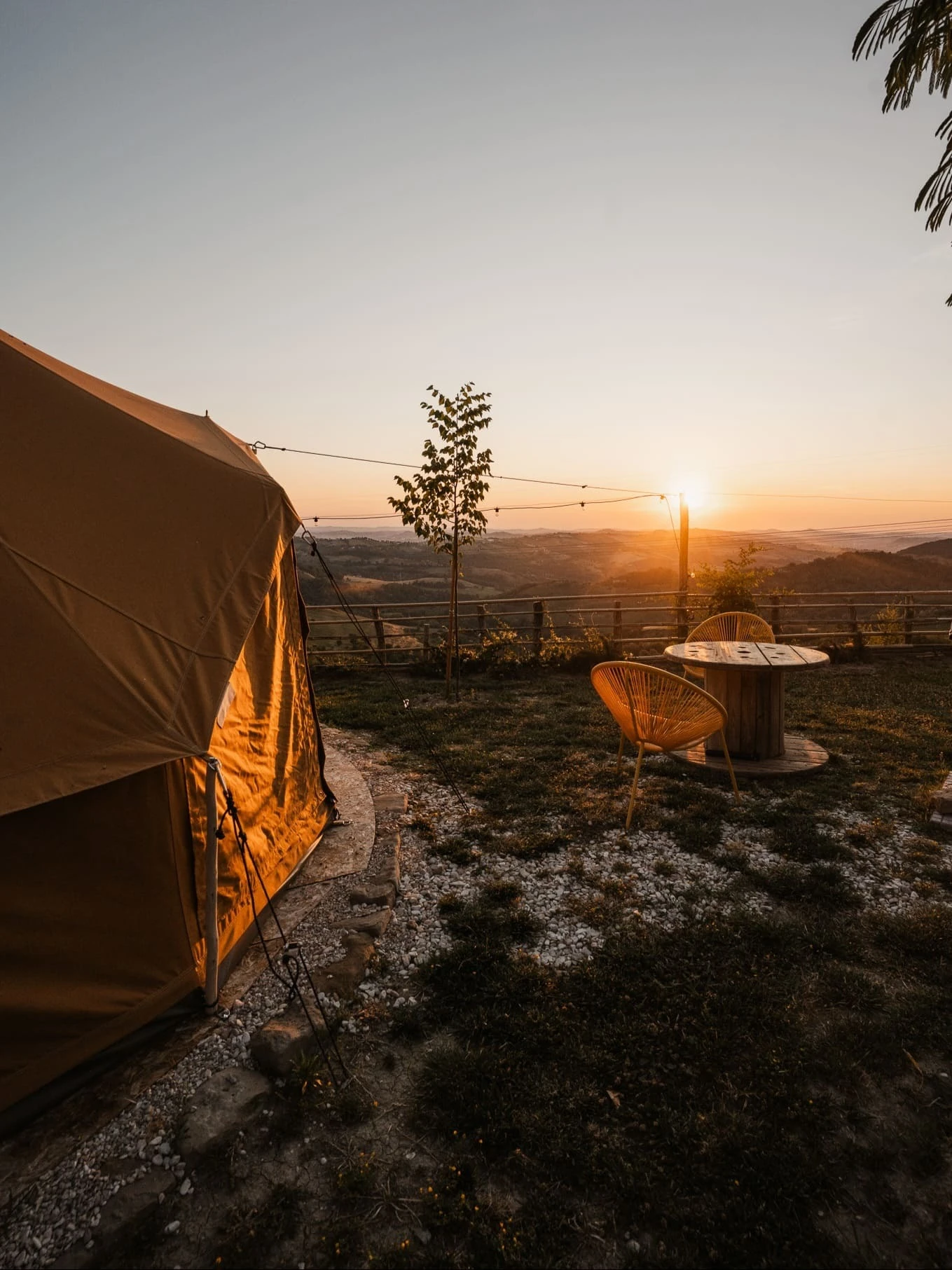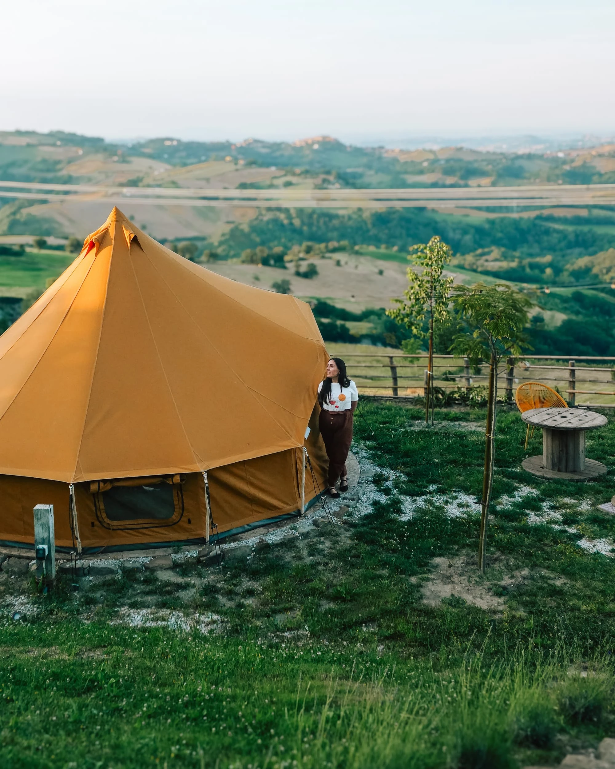 Venite a vivere un soggiorno indimenticabile in una tenda glamping a Gualdo, incantevole borgo situato nelle Marche, con una vista spettacolare sui splendidi Colli Marchigiani.