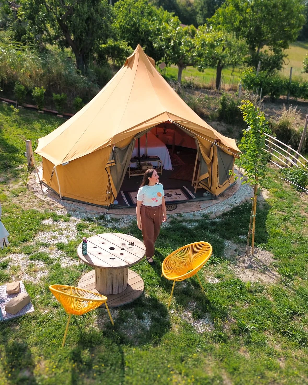 Ottima soluzione per rilassarsi circondati dalla natura. Perfetto per chi vuole soggiornare in una struttura unica ed insolita, con una vista impagabile. Gli arredi dell’interno e della tenda sono composti da diversi elementi hand made fatti direttamente dai proprietari con oggetti di riciclo. Il glamping/country house si trova ai piedi dei Monti sibillini e vicino a diversi borghi, nonché a poca distanza dal mare. Ottimo per chi ama esplorare ad un ritmo lento e lontano dal turismo di massa. Camilla e Francesco sono molto accoglienti e vi faranno sentire come a casa. Fermatevi a fare due chiacchiere con loro per ascoltare la loro storia, i loro viaggi e per farvi consigliare luoghi da visitare nelle Marche. Consigliatissimo, ci torneremo presto!